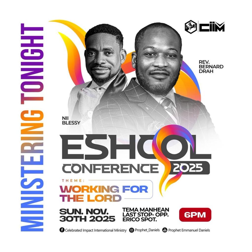 Beloved, tonight marks a prophetic turning point in our ESHCOL CONFERENCE. As we’ve entered the final week, God has blessed us with the ministry of one of my faithful sons of the covenant — Rev Bernard K.Drah- an Apostle–Prophet whose life is a living testimony of God’s transforming power.